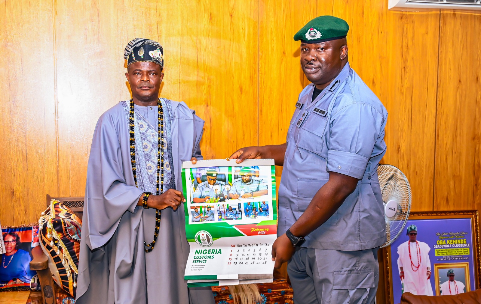 As part of a strategic initiative to fortify national security ahead of the upcoming electoral cycle, Ogun I Area Command, led by the Ag. Customs Area Controller, *Deputy Comptroller of Customs Oladapo Afeni*, paid a courtesy visit to the Paramount Ruler of Yewaland, His Royal Majesty, *Oba Kehinde Olugbenle* at his palace in Ilaro, ogun state